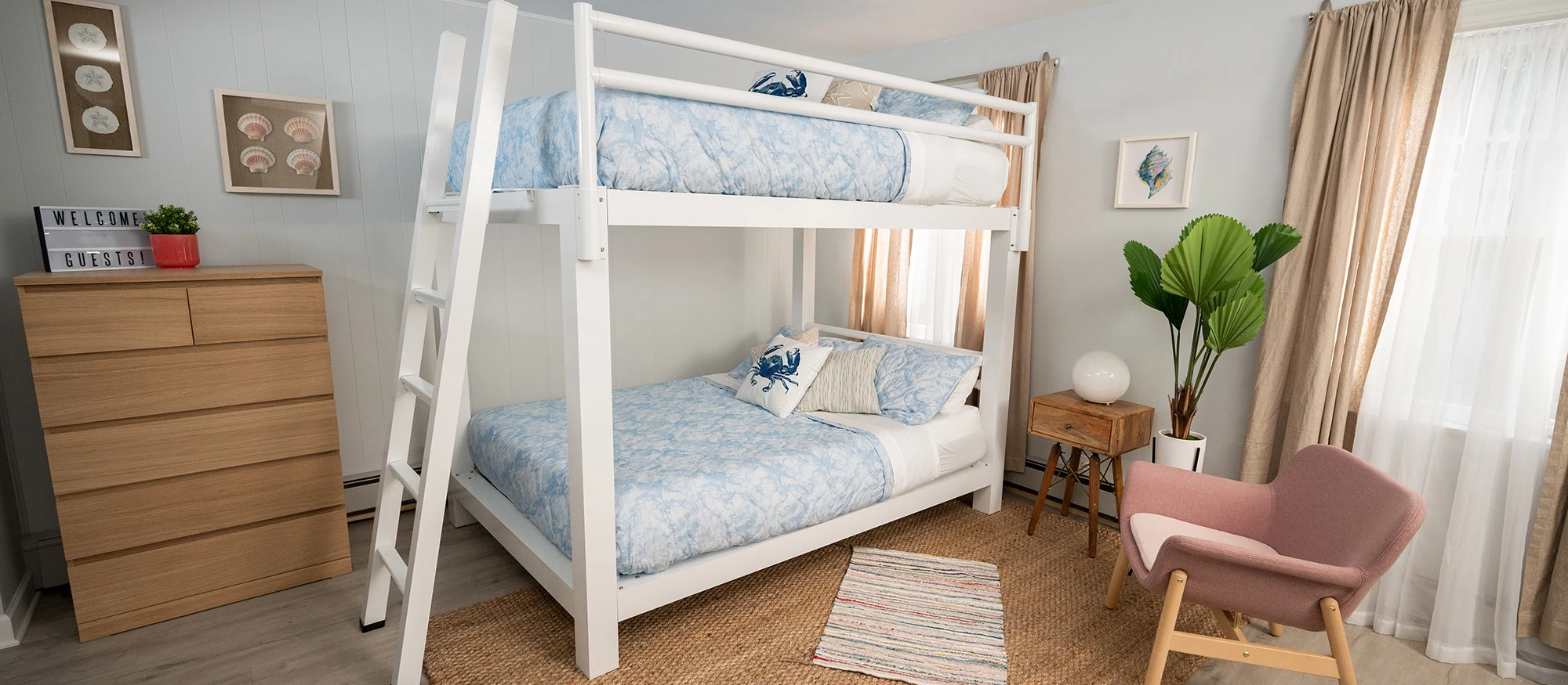 Using a bunk bed in your vacation home, short-term rental, or Airbnb is similar to putting one in your guest room. The premise is basically the same: Comfortably sleep multiple people in one room without wasting floor space.