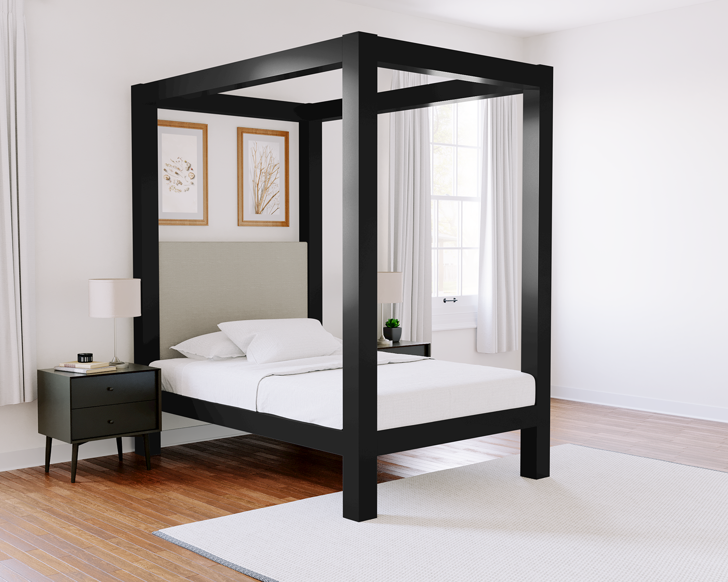 Our Full Canopy Bed comes standard with a super comfortable foam headboard, available in the fabric of your choice to help match your style and keep your bed looking snazzy. Contact us if you would like to review our entire selection of fabric options before ordering your Full Canopy Bed.